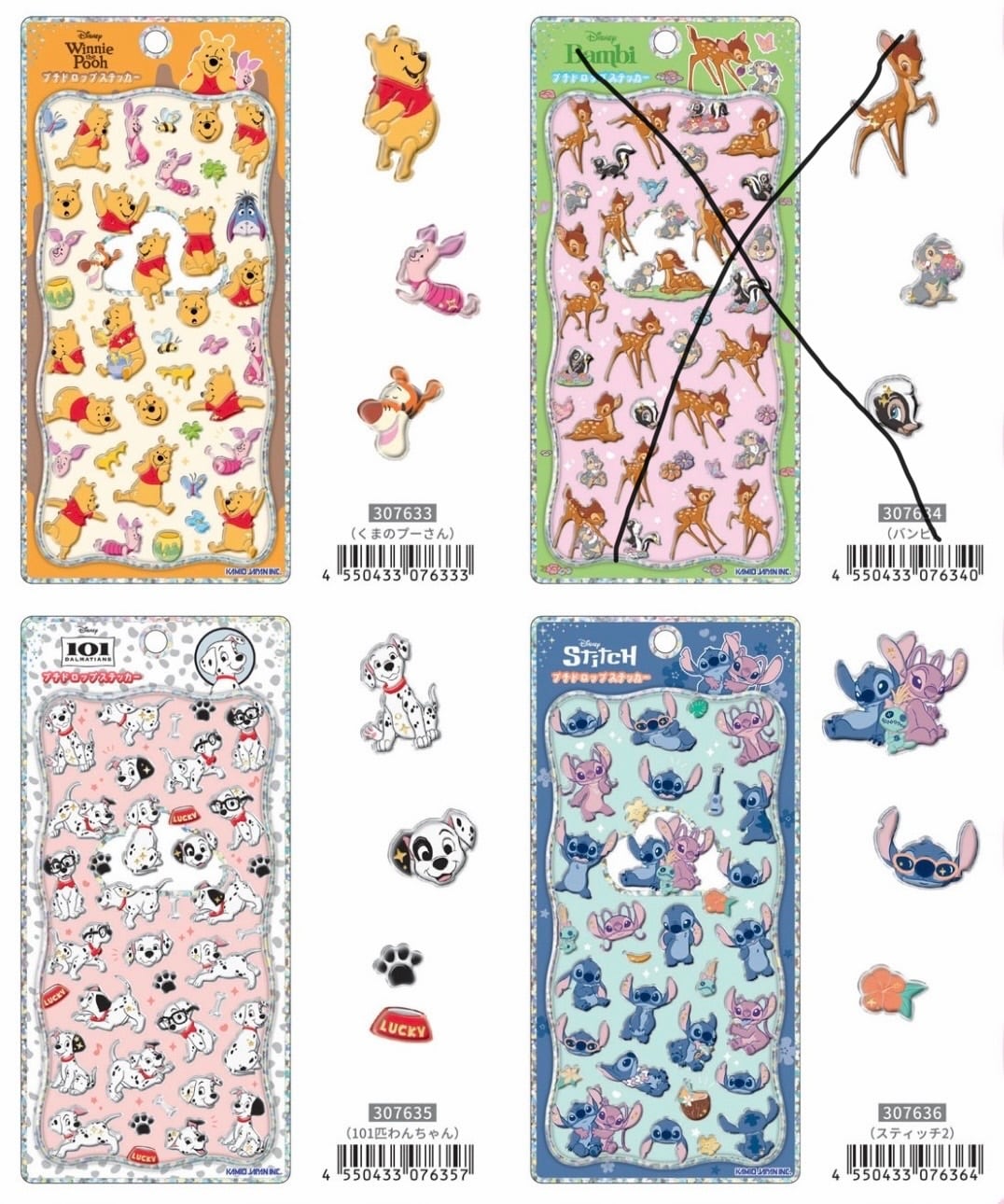 プチドロップステッカー ディズニー プーさん スティッチ 101匹わんちゃん